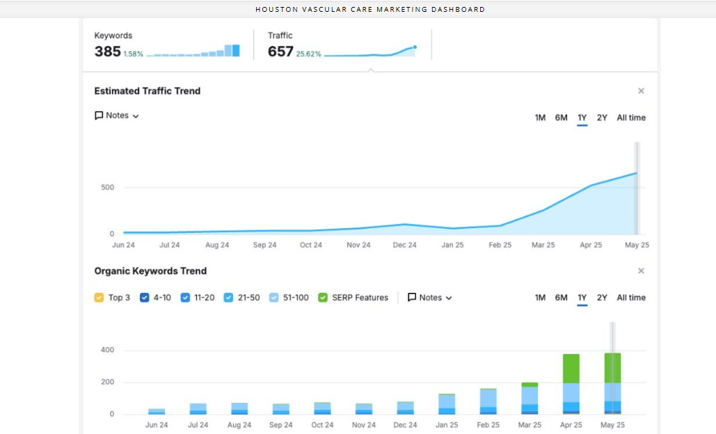 Houston Vascular Care is a practice that had no online recognition and had not seen much traffic to their website. The practice was not able to increase patient consults and procedures across multiple treatment areas and were only known as a vein clinic.